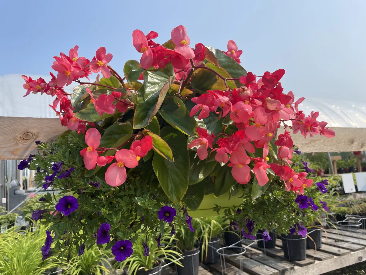 Balconnière – jardinière fleurie avec support, prête à accrocher!