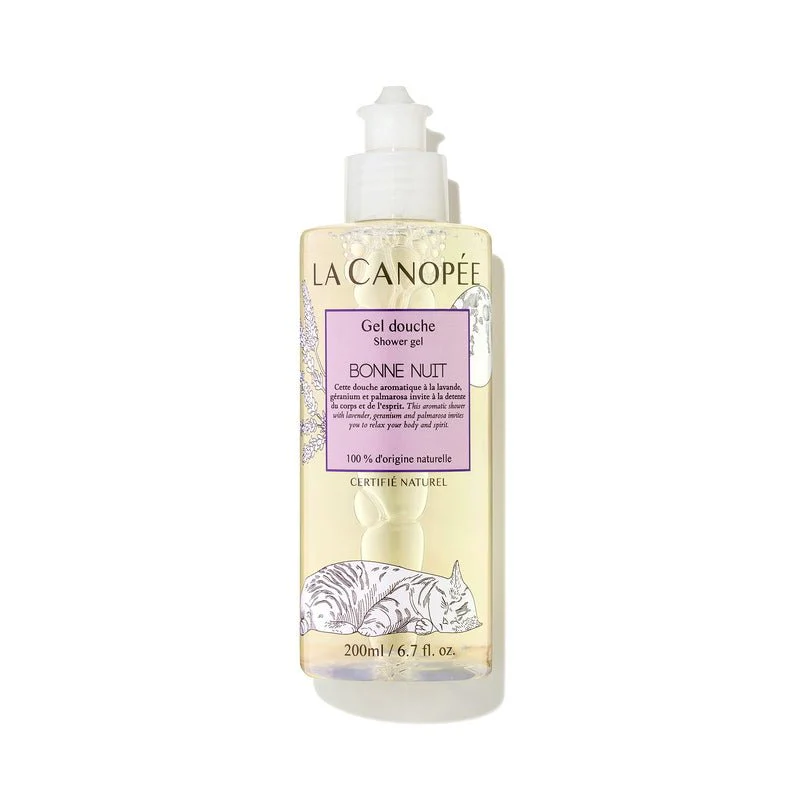 Douches aromatiques à la lavande, géranium et palmarosa. Le gel douche merveilleusement parfumé Bonne Nuit de La Canopée invite le corps et l’esprit à prendre une douche relaxante.