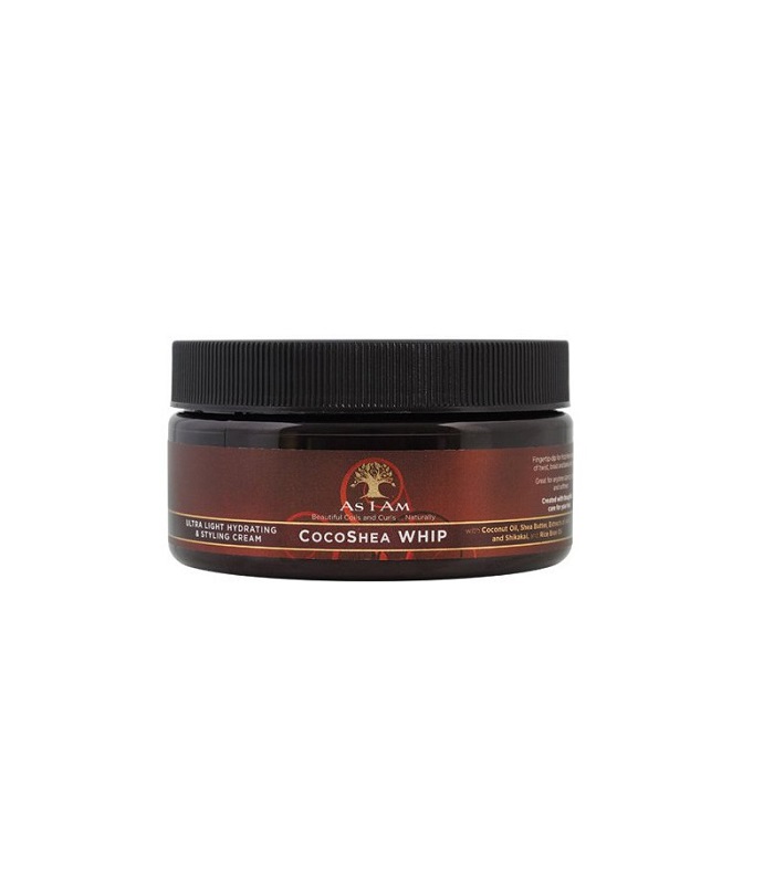 La crème coiffante fouettée COCOSHEA WHIP de la marque AS I AM hydrate, fait briller et maintient les coiffures twistées ou locksées.