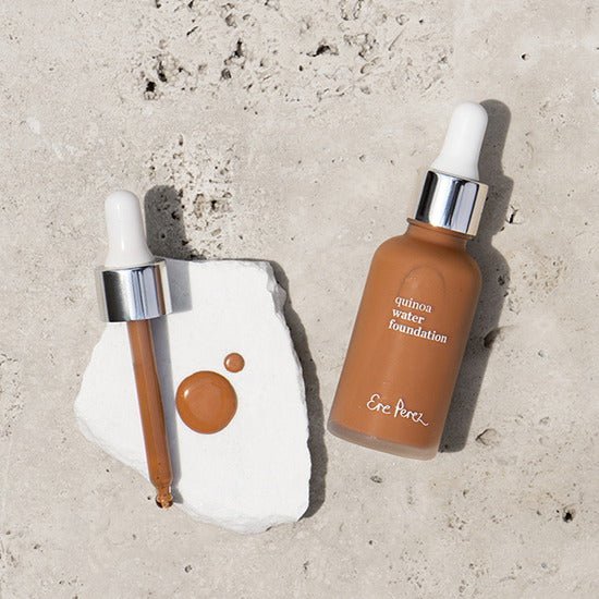 La Quinoa Water Foundation Dawn par Ere Perez est un apprêt léger à base d’eau avec une couverture légère à moyenne. Comme une crème, il fond instantanément sur la peau, laissant un fini mat.