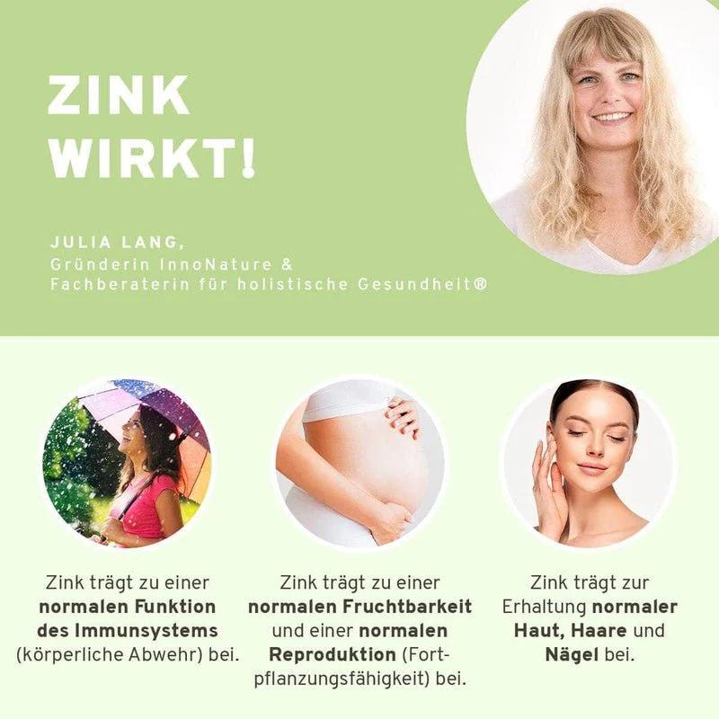Les capsules de zinc d’Innonature ont un effet holistique sur le bien-être et couvrent de manière optimale vos besoins quotidiens. Comme le zinc peut difficilement être stocké par l’organisme lui-même, un apport supplémentaire est important.