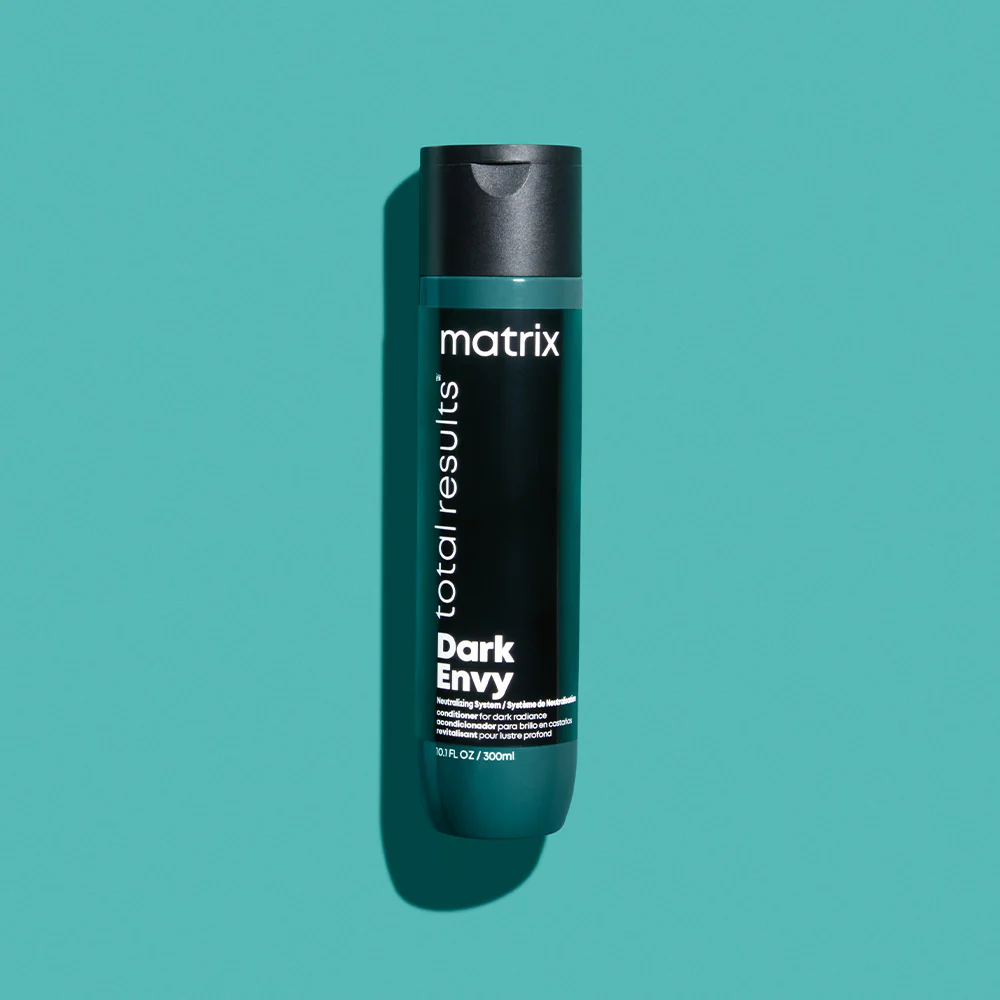 Vous voyez du rouge? Enrichissez les bases sombres avec Dark Envy qui neutralise les nuances rouges sur les cheveux vierges, et les cheveux colorés, du noir au brun foncé. Le revitalisant Dark Envy Total Results est un revitalisant sans dépôt qui enrichit les bases sombres naturelles et colorées en hydratant profondément chaque fibre, en améliorant la maniabilité et en laissant une finition brillante.