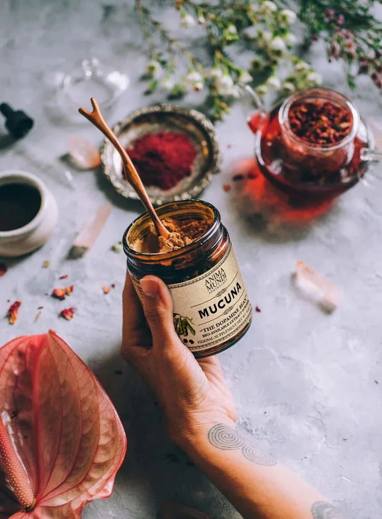 - Mucuna, également connu sous le nom de haricot velouté, est l’une des rares sources naturelles et hautement concentrées de L-Dopa. La L-Dopa est un acide aminé naturel qui se transforme en dopamine dans le cerveau. La dopamine est un neurotransmetteur qui produit des sentiments de joie et de bonheur. La légumineuse adaptogène est utilisée par les peuples autochtones depuis des siècles comme superaliment pour stimuler l’énergie et améliorer l’humeur. Mucuna a un léger effet équilibrant sur le cerveau et le système hormonal. Pour cette raison, il est souvent utilisé contre la dépression et l’anxiété, qui peuvent être en partie liées à l’épuisement ou à une performance insuffisante de ces neurotransmetteurs importants. Peut soulager le stress et soutenir la fonction sexuelle.