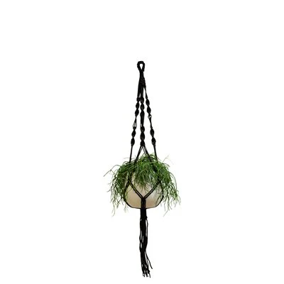 Support de plante en macramé noir, 90 cm.