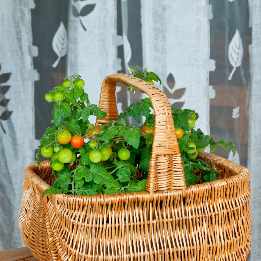 Tomate cerise rouge patio ‘Red Robin’ (plant BIO). Tomate cerise de couleur rouge au goût très sucré. Plant compact idéal en pot et pour croissance intérieure.